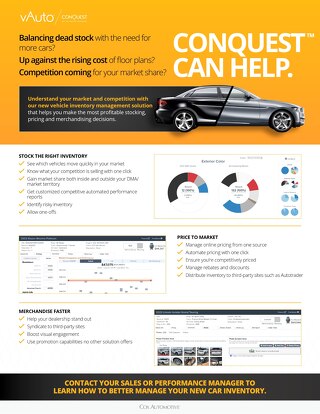 Many dealers feel like their inventory — and their success — is limited. Dealers who use Conquest™ feel differently and have as much as a 39% increase in new car sales to show for it.